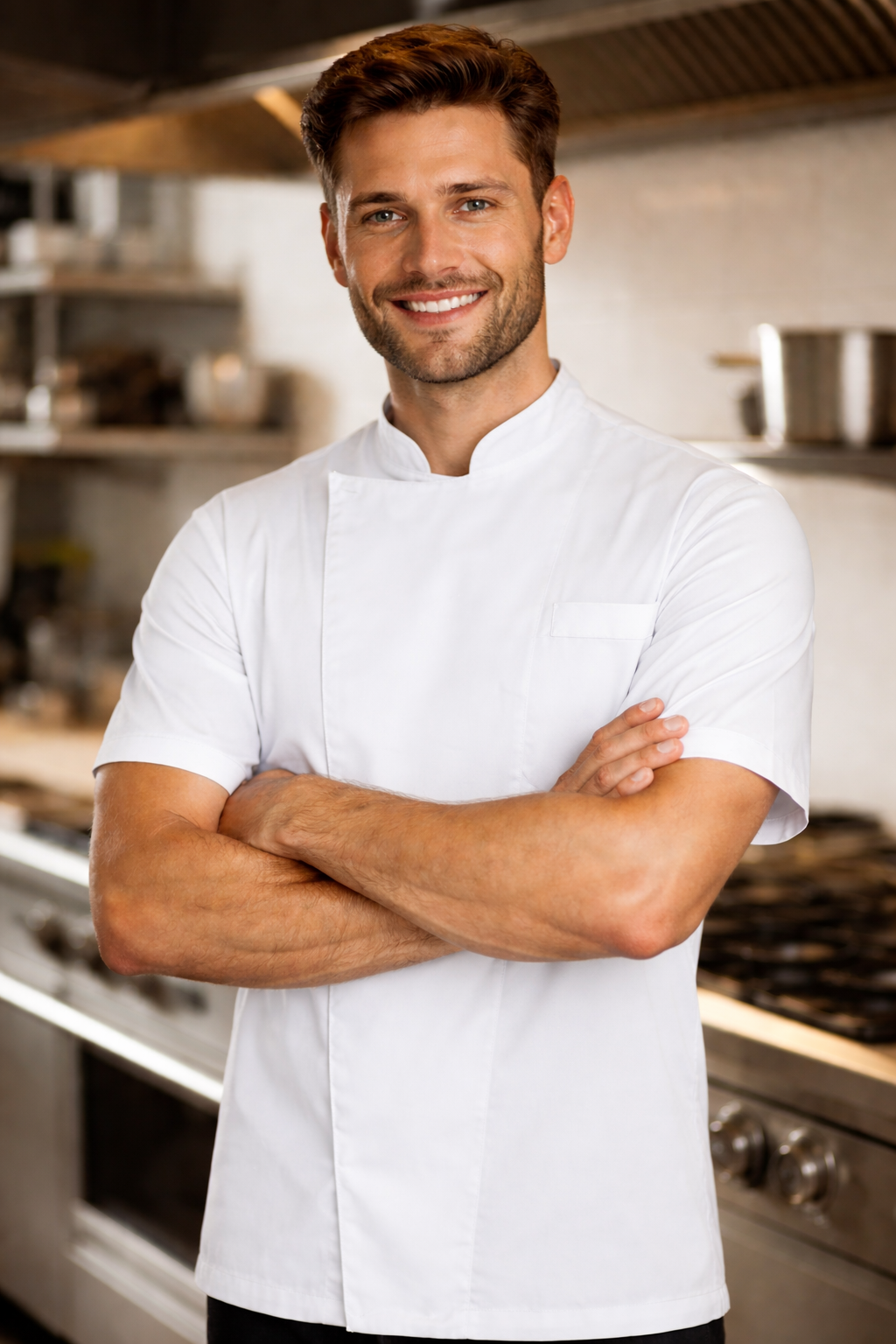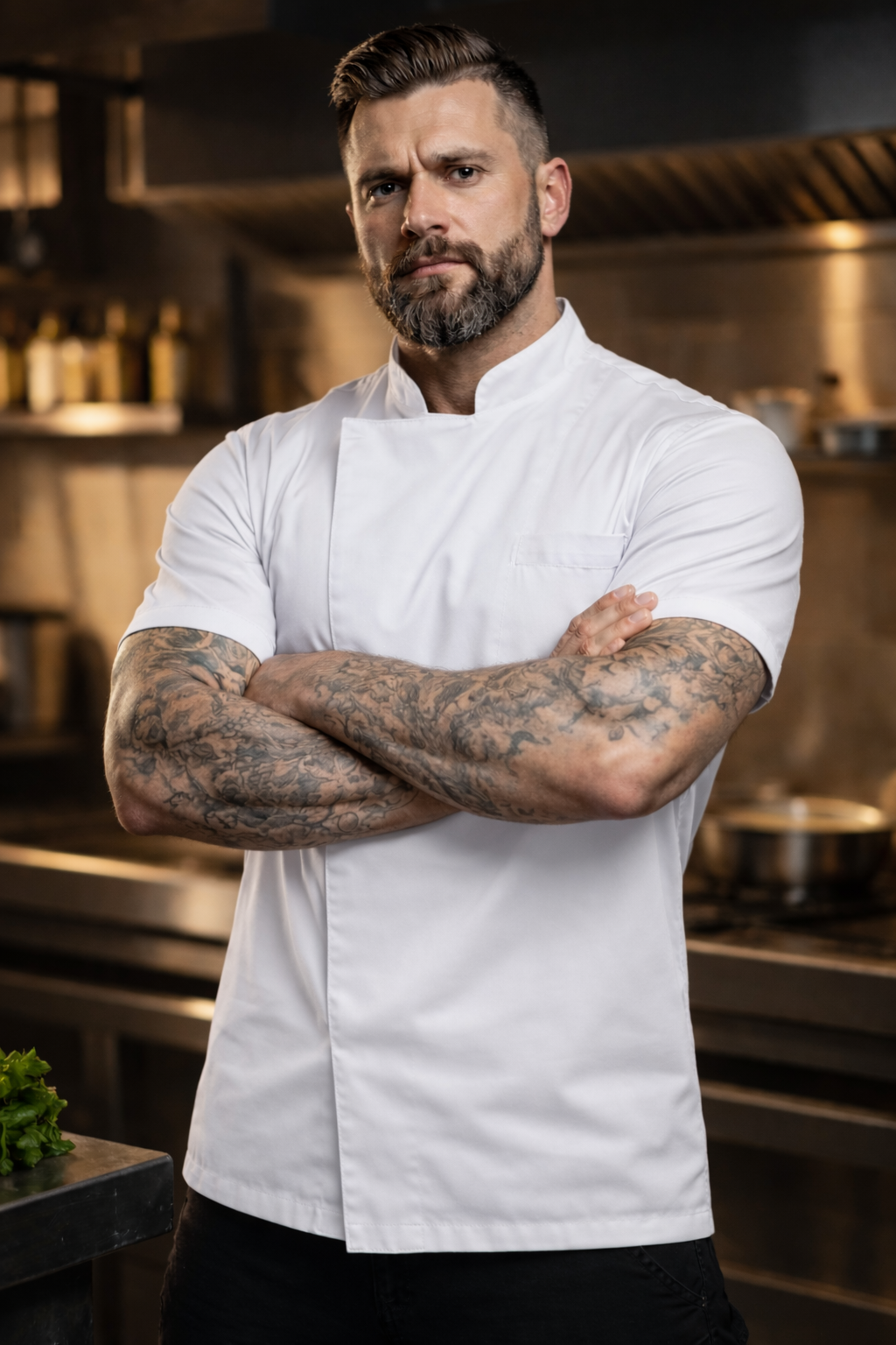 Krátký rukáv pro lepší ventilaci: Ideální volba pro práci u grilu, konvektomatu nebo v letních měsících. Zajišťuje přirozené ochlazování paží a neomezený rozsah pohybu.