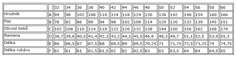 P: Žehlení při vysoké teplotěVelikostní tabulka