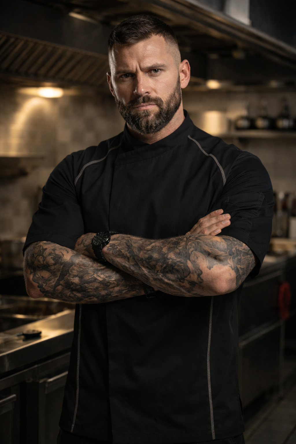 Univerzální Unisex střih: Navržen dánskými specialisty tak, aby ergonomicky seděl oběma pohlavím. Zajišťuje naprostou volnost pohybu při krájení, míchání i servírování.