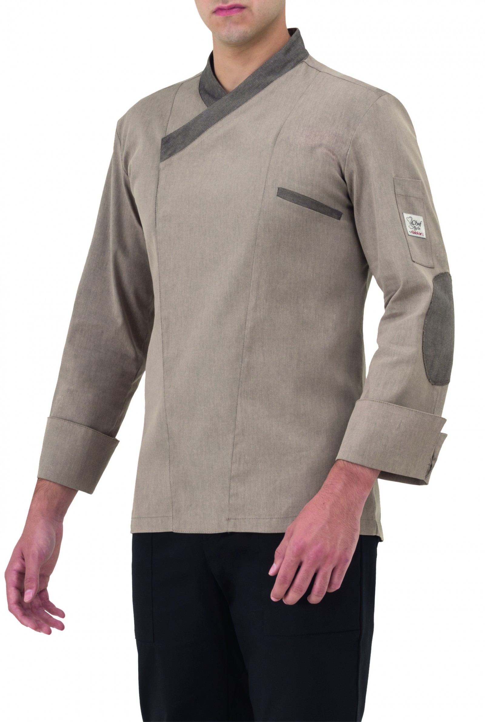 pánský kuchařský rondon s dlouhým rukávem, vhodný také pro cukráře, pekaře, dlouhý rukáv s otočnou manžetou, termo větrání pod pažemi, 60% bavlna 31% polyester a 2% elastan, zapínání na cvočky, Více o produktu