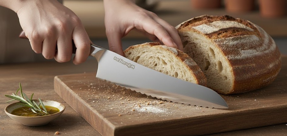 MARMITON Šikotan nůž na pečivo s délkou čepele 20 cm představuje ideální nástroj pro precizní krájení všech druhů chleba i sladkého pečiva. Tento kvalitní nůž na chléb z řady Šikotan je vybaven ostrou vlnitou čepelí a elegantní ergonomickou rukojetí z exotického dřeva rosewood (růžové dřevo). Kombinace vysoce odolné oceli a luxusního designu zajišťuje čistý řez bez drcení střídky. Více o produktu