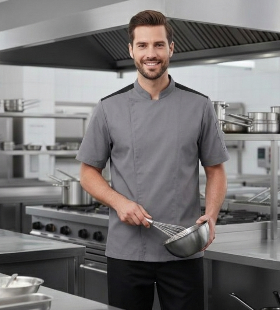 Kuchařský rondon Thiago Giblor´s krátký rukáv barva šedá