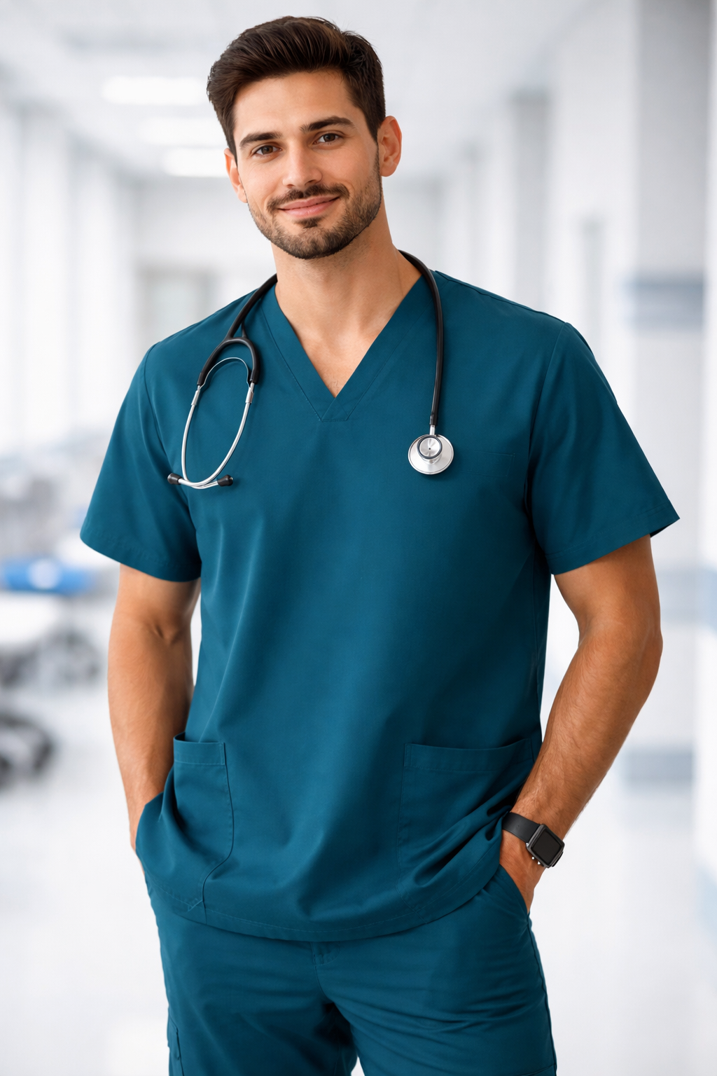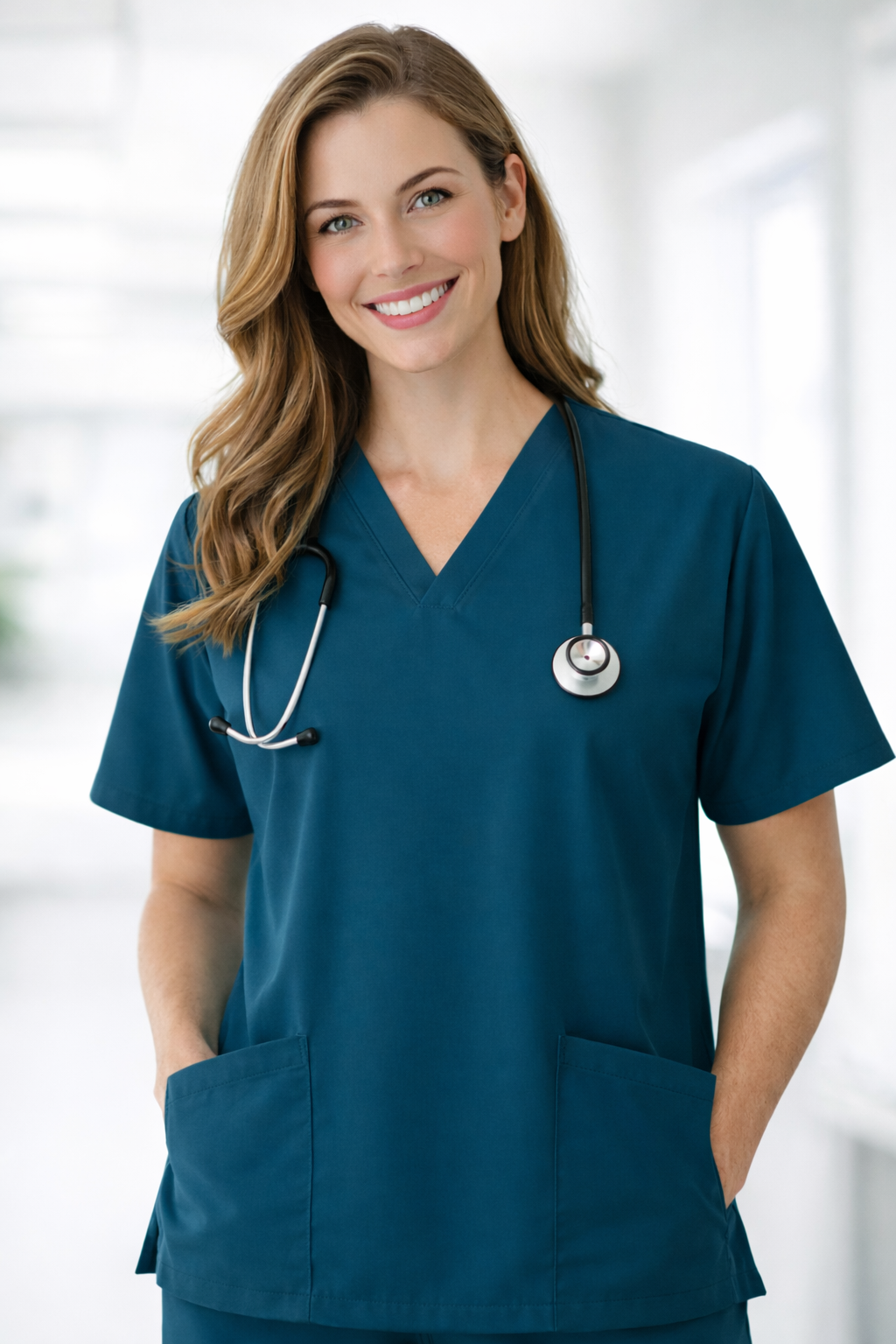 zdravotnická halena nebo také lékařská halena, antibakteriální s přídavkem stříbra, unisex, výstřih do V, tři kapsy, 100 polyester, 140g, barva modrá Více o produktu