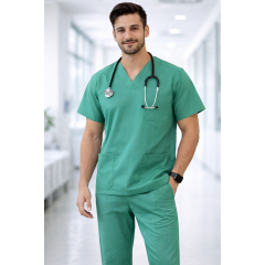 set zdravotnická halena a zdravotnické kalhoty modré, Košilka: Raglánové rukávy s výstřihem do strany, boční rozparky, tři kapsy: 3 našité kapsy, 80% polyester - 20% bavlna, Kalhoty: Elastický pas, dvě kapsy: 2 francouzské kapsy, barva světle modrá Více o produktu