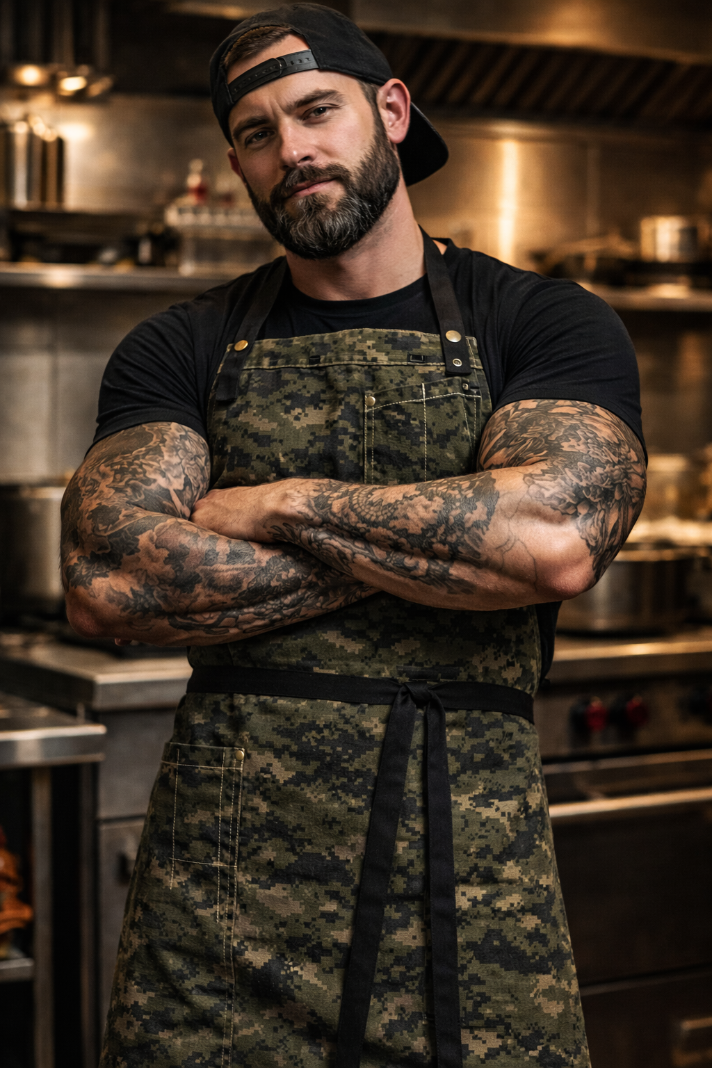 Kentaur 30360 Camouflage číšnická a kuchařská zástěra s laclem kamufláž